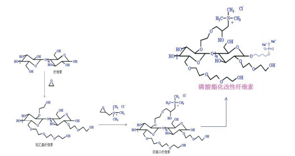 Product Introduction: Phosphatized modified cellulose is an amphoteric cellulose, which has both anion and cation groups on the main chain of cellulose. In addition to having special solution properties and rheological properties similar to ordinary amphoteric electrolytes, such as thickening, resistance reduction, flocculation, suspension, and other functions, it also has advantages such as rich sources of high molecular polysaccharides and easy biodegradation. Its structure is similar to that of glycerides phosphate in human cell membranes, It is a high value-added cellulose derivative.