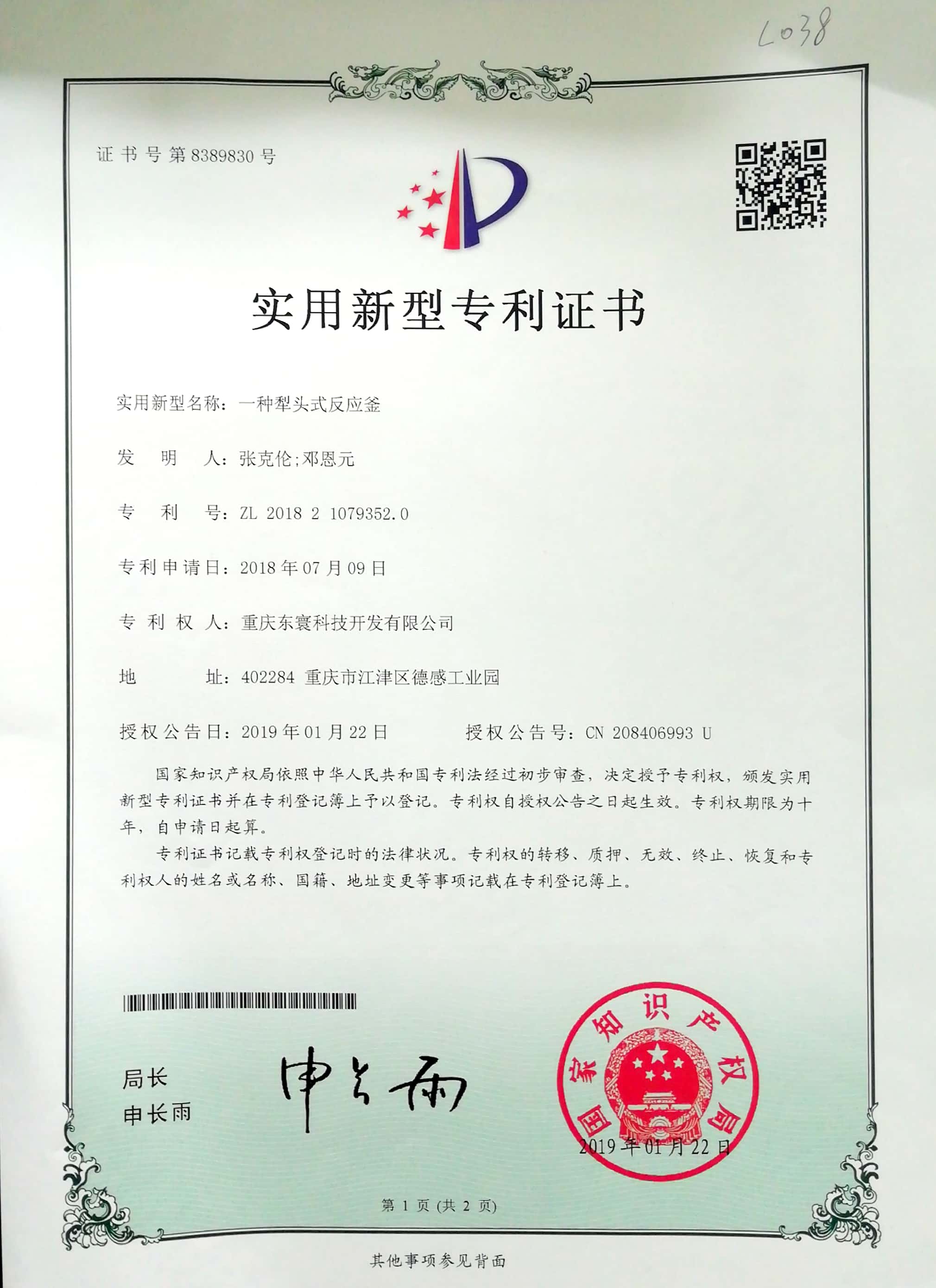 Utility model patent certificate