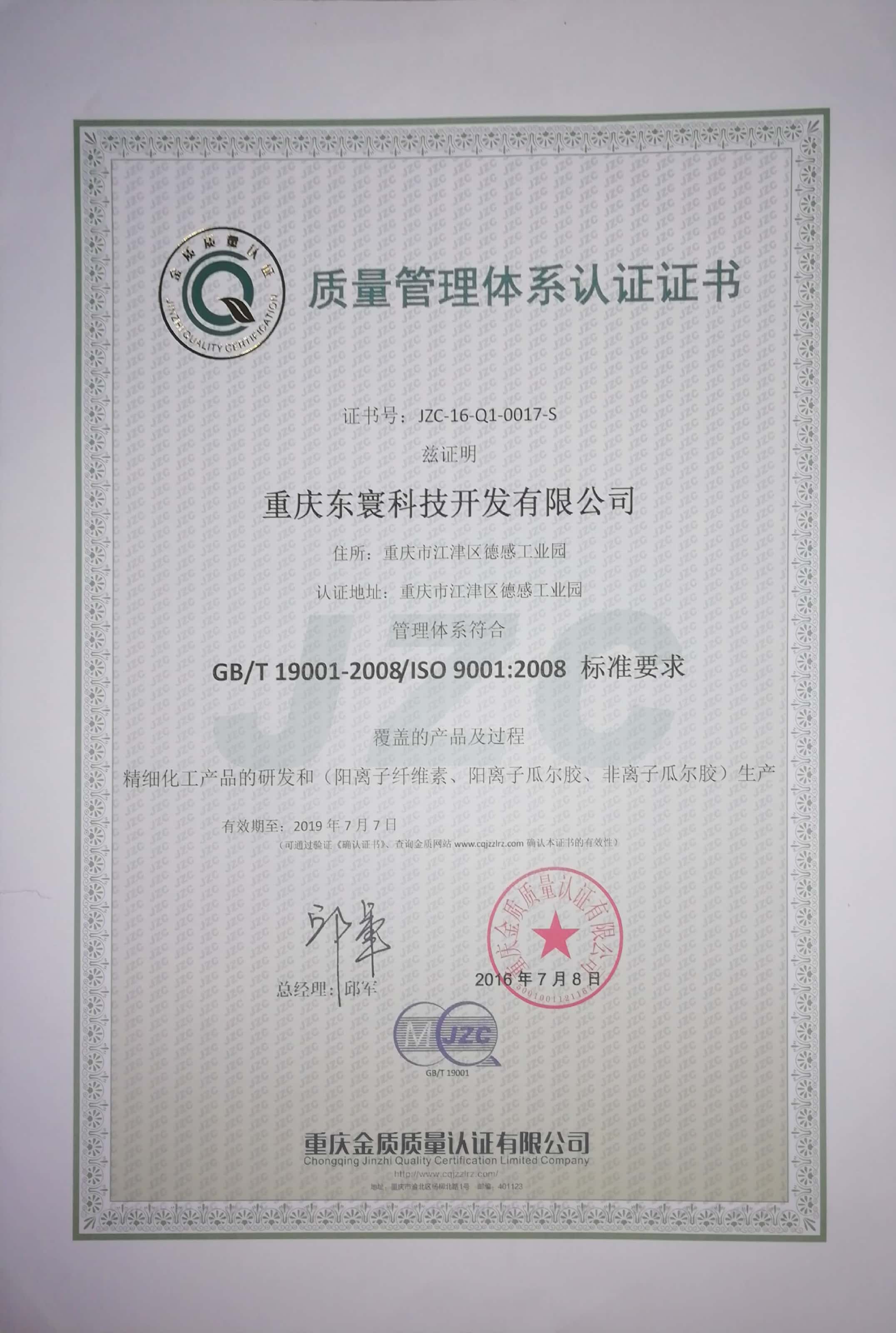 质量管理体系认证证书