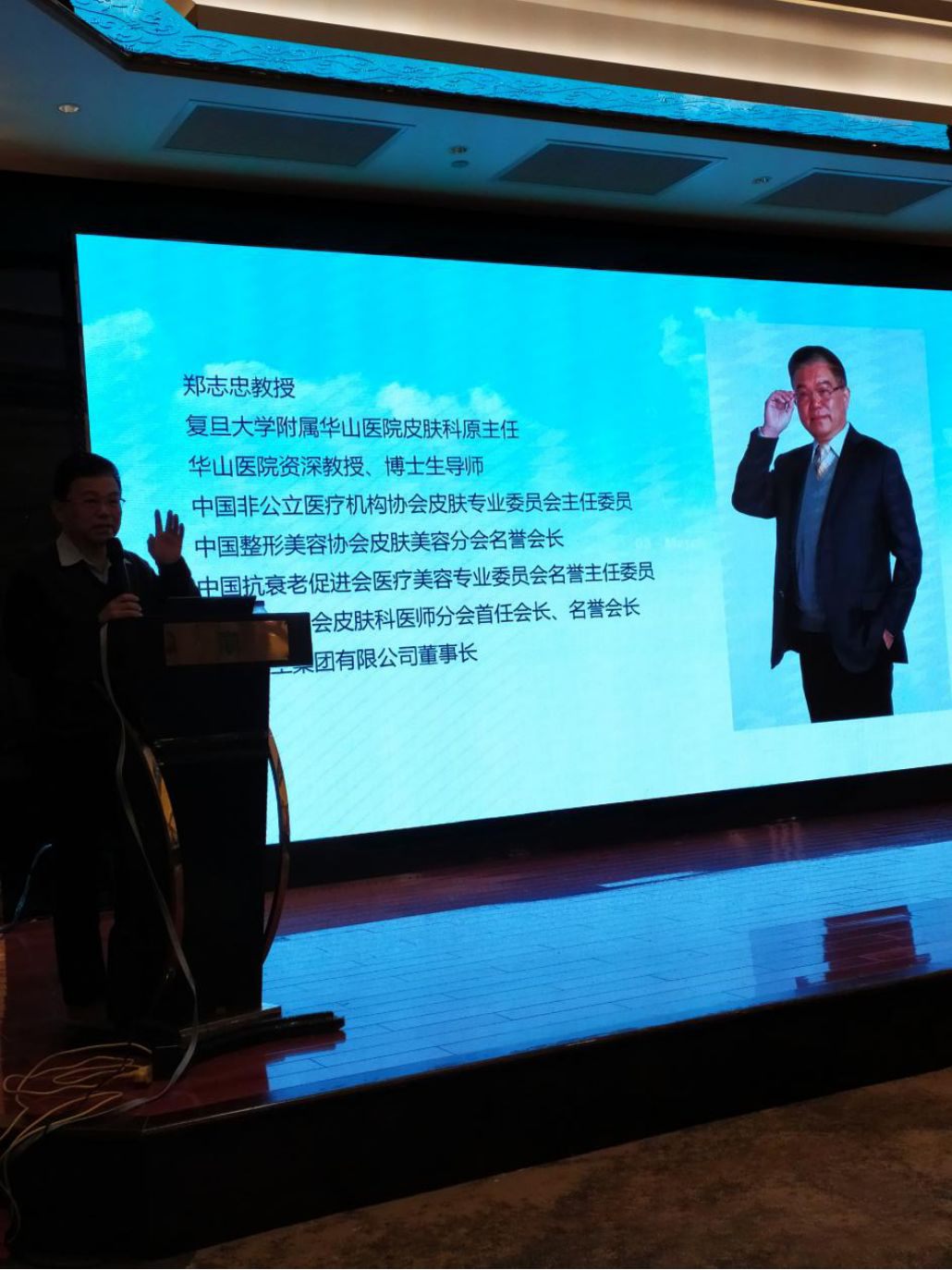▲原华山医院皮肤科主任,非公医院皮肤科主委郑志忠教授讲述皮肤科医生与功能型护肤品